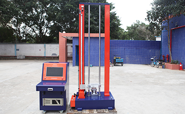為模擬運輸過程中可能發生的撞擊,將被測樣品用堅硬支架緊固在試驗裝置上,支架支撐著試驗樣品的所有安裝面。采用半正弦波沖擊,設置最大加速度150gn,脈沖時間6ms,在安裝方位的三維方向上,正、反方向各沖擊三次,共經受18次沖擊。如果是大型電池或大型電池組,則采用最大加速度50gn,脈沖時間11ms的半正弦波沖擊。測試完畢評判依據同3.1.2。本試驗設備如圖3所示: